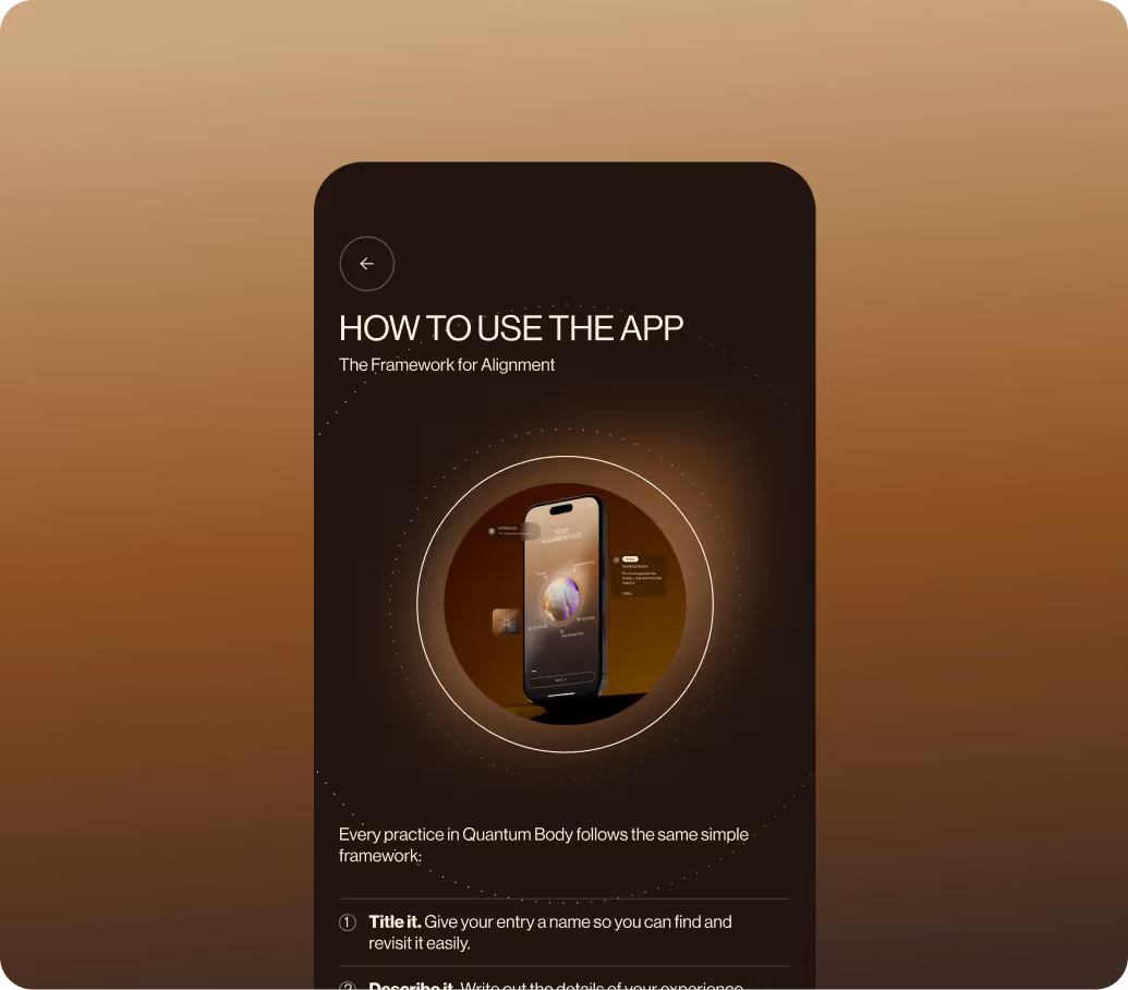 Quantum Body brings your daily practices into one organized, mindful space. It transforms your phone into a place for reflection, intention, and awareness.